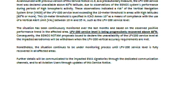 The EGNOS Service Notices are notifications published whenever there is any complementary information that could have a relevant impact…